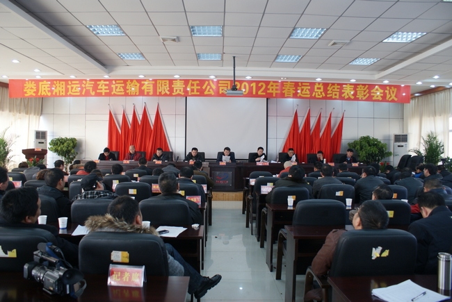 雄壯的國歌聲開啟了先進表彰會的序幕。首先,公司董事長兼總經(jīng)理彭瑞華做了2012年春運工作總結(jié)。他說,2012年春運于1月8日開始,至2月16日結(jié)束,全司上下緊緊圍繞“以人為本、科學組織、安全有序、優(yōu)質(zhì)高效”的總體要求,在各級政府及行業(yè)主管部門的關(guān)心和支持下,通過廣大員工的共同努力,實現(xiàn)了春運安全生產(chǎn)雙豐收,春運40天全司共完成招攬收入3496.42萬元,與2011年同期比增加了165.6萬元,增長了4.97%。全司共運行班次11.03萬次,共投入建制營運客車376臺、旅游公車30臺、出租車114臺,參運客車駕駛員484名、出租車駕駛員228名,安全運行里程736.8萬公里。春運40天,各單位充分利用了廣播、電視、網(wǎng)絡、報紙、刊物等宣傳媒體,及時宣傳報道了公司的春運安全生產(chǎn)情況。同時,他指出,今年春運期間各單位均能從服務質(zhì)量入手,改變春運期間客流量大、服務工作難的傳統(tǒng)觀念,盡管節(jié)后站場內(nèi)車多客流大,站外運輸市場競爭激烈,各單位均能克服困難,維護好站場秩序穩(wěn)定和站內(nèi)衛(wèi)生清潔,較好的樹立了文明窗口的形象。尤其是正月初六、初七因旅客較多,部分班車因道路堵塞晚點,致使旅客滯留在候車室,各單位均能安排人員耐心解釋,熱情服務,直至旅客發(fā)完后才回去休息,受到廣大旅客的一致好評。最后他強調(diào),2012年是國家“十二•五”規(guī)劃實施后承上啟下的重要一年,也是我司實現(xiàn)跨越式發(fā)展的關(guān)鍵之年,我們要繼續(xù)發(fā)揚成績,克服不足,把春運工作的重心從緊緊圍繞目標任務開始,制定切實可行的方案和措施,從而變“坐攬營收”為招攬營收,真正做到收入顆粒歸倉。