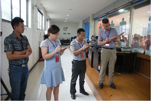 公司董事長(zhǎng)兼總經(jīng)理彭瑞華(左三)親臨理論考試比賽現(xiàn)場(chǎng)