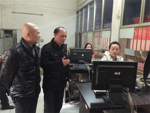 公司董事兼副總經(jīng)理陳夢麟(左二)、總經(jīng)理助理、婁底汽車站經(jīng)理楊付生(左一)視察婁底汽車站聯(lián)網(wǎng)售票工作