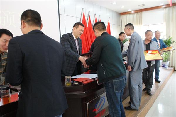 董事長(zhǎng)兼總經(jīng)理彭瑞華等公司領(lǐng)導(dǎo)為2015年春運(yùn)先進(jìn)班組頒獎(jiǎng)