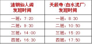 7月5日:開通漣鋼仙人閣至天籟寺、白水泥廠的專線班車,每天四班,運行線路及發(fā)班時間如下: