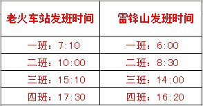7月6日:開通老火站至古塘、雷鋒山的農(nóng)村客運班車,每天四班,運行線路及發(fā)班時間如下: