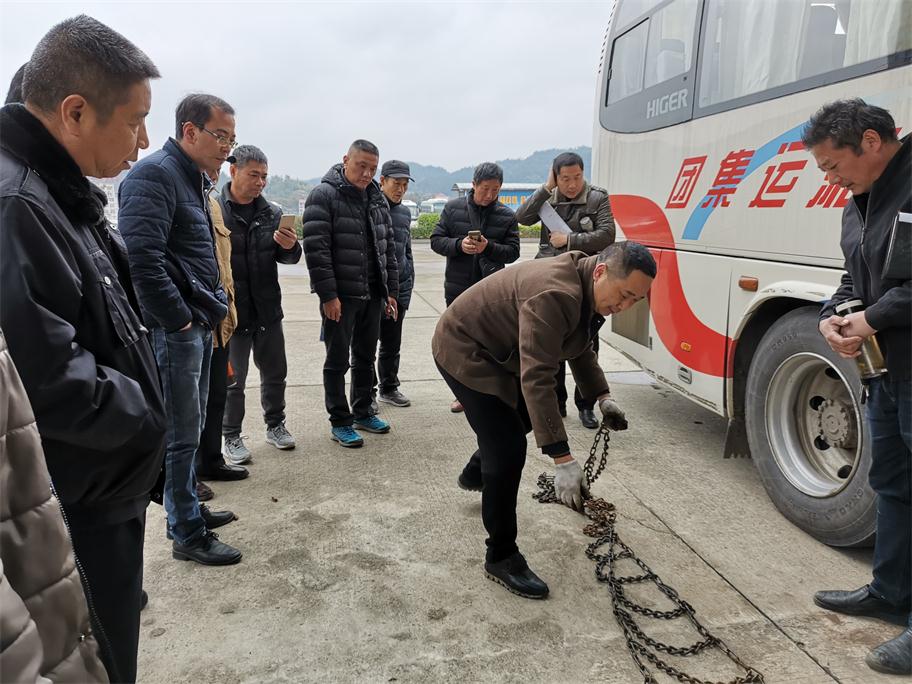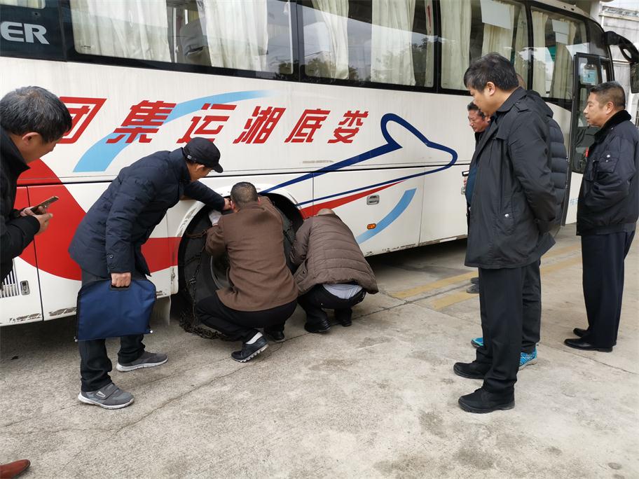 根據(jù)氣象預(yù)報(bào)發(fā)布,我市將持續(xù)低溫雨雪冰凍惡劣天氣,給老百姓工作、生活以及交通出行帶來極大影響。為將惡劣雨雪冰凍影響降到最低,確保旅客平安出行,婁底湘運(yùn)集團(tuán)嚴(yán)陣以待,積極應(yīng)對(duì),落實(shí)責(zé)任,提前啟動(dòng)冰雪惡劣天氣應(yīng)急方案,扎實(shí)做好各項(xiàng)防范措施以及安全生產(chǎn)工作。一、公司召開安全例會(huì),提前就冬季安全工作進(jìn)行全面布置,重點(diǎn)部署了即將到來的低溫雨雪冰凍惡劣天氣安全工作。二、組織各單位安全副經(jīng)理、安技辦主任等現(xiàn)場(chǎng)觀摩防滑鏈安裝演練,要求安全管理工作中高標(biāo)準(zhǔn)督促駕駛員落實(shí)。三、通過安全QQ、微信群、電話等及時(shí)轉(zhuǎn)發(fā)天氣預(yù)報(bào),針對(duì)性采取防范措施。四、充分利用動(dòng)態(tài)監(jiān)控,第一時(shí)間掌握車輛的運(yùn)行狀態(tài),對(duì)在外運(yùn)行的班車逐臺(tái)查詢,對(duì)全司所有車輛每隔2小時(shí)發(fā)布惡劣天氣預(yù)警,五、要求各單位做好防冰防寒防滑以及安全警示警告及班次停運(yùn)通知公示工作,六是增派問訊人員,及時(shí)給廣大旅客做好停運(yùn)解釋工作,要求所有售票窗口不收取任何退票手續(xù)費(fèi),免費(fèi)提供熱開水,開放空調(diào)候車室等保暖工作。七是加強(qiáng)對(duì)各單位冬季安全工作督查力度。29日晚婁底迎來降雪,安全副總羅雄雁率安技部人員冒雪前往婁底車站南站檢查,并來到監(jiān)控中心,通過監(jiān)控平臺(tái)對(duì)全司車輛狀態(tài)以及按要求停運(yùn)車輛情況進(jìn)行重點(diǎn)檢查,對(duì)各單位防滑防冰保暖警識(shí)牌設(shè)立、值班值守情況進(jìn)行了現(xiàn)場(chǎng)落實(shí)與督辦。