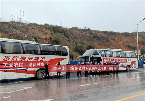 為貫徹落實(shí)中央和省、市關(guān)于疫情防控和全力做好農(nóng)民工返崗運(yùn)輸服務(wù)保障的決策部署,針對(duì)農(nóng)民工返崗生產(chǎn)企業(yè)復(fù)工緊迫的情況,在市委市政府、行業(yè)主管部門的大力支持以及各縣市人民政府和交通、人社等部門的精心組織下,我市啟動(dòng)“點(diǎn)對(duì)點(diǎn),一站式”客運(yùn)包車,助力農(nóng)民工安全有序返崗。作為承擔(dān)各縣市農(nóng)民工返崗復(fù)工包車運(yùn)輸任務(wù)的主力軍——婁底湘運(yùn)集團(tuán),從2月18日開(kāi)始,我司各客運(yùn)單位已調(diào)度70臺(tái)次定制包車,分20批安全運(yùn)送1662名婁底、新化、漣源、雙峰、冷江籍農(nóng)民工前往長(zhǎng)沙瀏陽(yáng)、浙江義烏、福建、廣州、東莞、貴州、?诘鹊胤祶弿(fù)工。