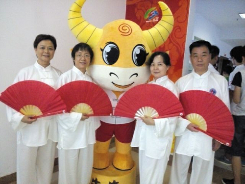 “白袍紅扇功夫令,削撩架推手法精,剛健優(yōu)美韻味純,自強(qiáng)不息太極人”,開幕式的第四個文藝表演節(jié)目,是充滿飄逸美感和武術(shù)剛陽之氣的太極功夫扇隊(duì)手持紅扇,伴隨著音樂表演,精彩的表現(xiàn)贏得了觀眾的陣陣掌聲,來自湘運(yùn)太極站的李定紅、彭玉梅、曾吉福、何文選四人的身影出現(xiàn)在了這支優(yōu)秀的表演隊(duì)伍中。這四人通過層層選拔脫穎而出,被選入開幕式太極功夫扇表演隊(duì)。為了備戰(zhàn)開幕式表演,在兩個多月排練中,他們克服天氣炎熱、訓(xùn)練強(qiáng)度大等困難,全身心投入到訓(xùn)練中,充分展示了婁底湘運(yùn)人團(tuán)結(jié)向上,勇于拼搏的精神。