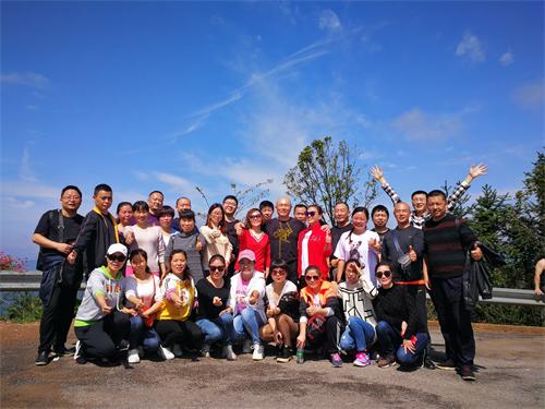 登高遠(yuǎn)眺,是無與倫比的美麗,像是人間仙境,山上的霧氣時(shí)升時(shí)降,所有的美景盡收眼底,天空格外的藍(lán),飛機(jī)飛過時(shí),又感覺觸手及可了。在歡快的合影后,準(zhǔn)備下山了,大家手牽著手,齊聲歡唱“團(tuán)結(jié)就是力量,團(tuán)結(jié)就是力量,這力量是鐵,這力量是鋼……”一路歌聲,一路歡笑,一路汗水,一路幸福!